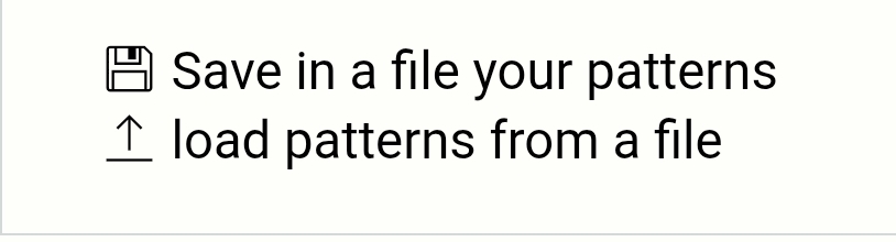 Down the list, there are two buttons. One to download your patterns in a file. And the other to extract patterns from a file.
